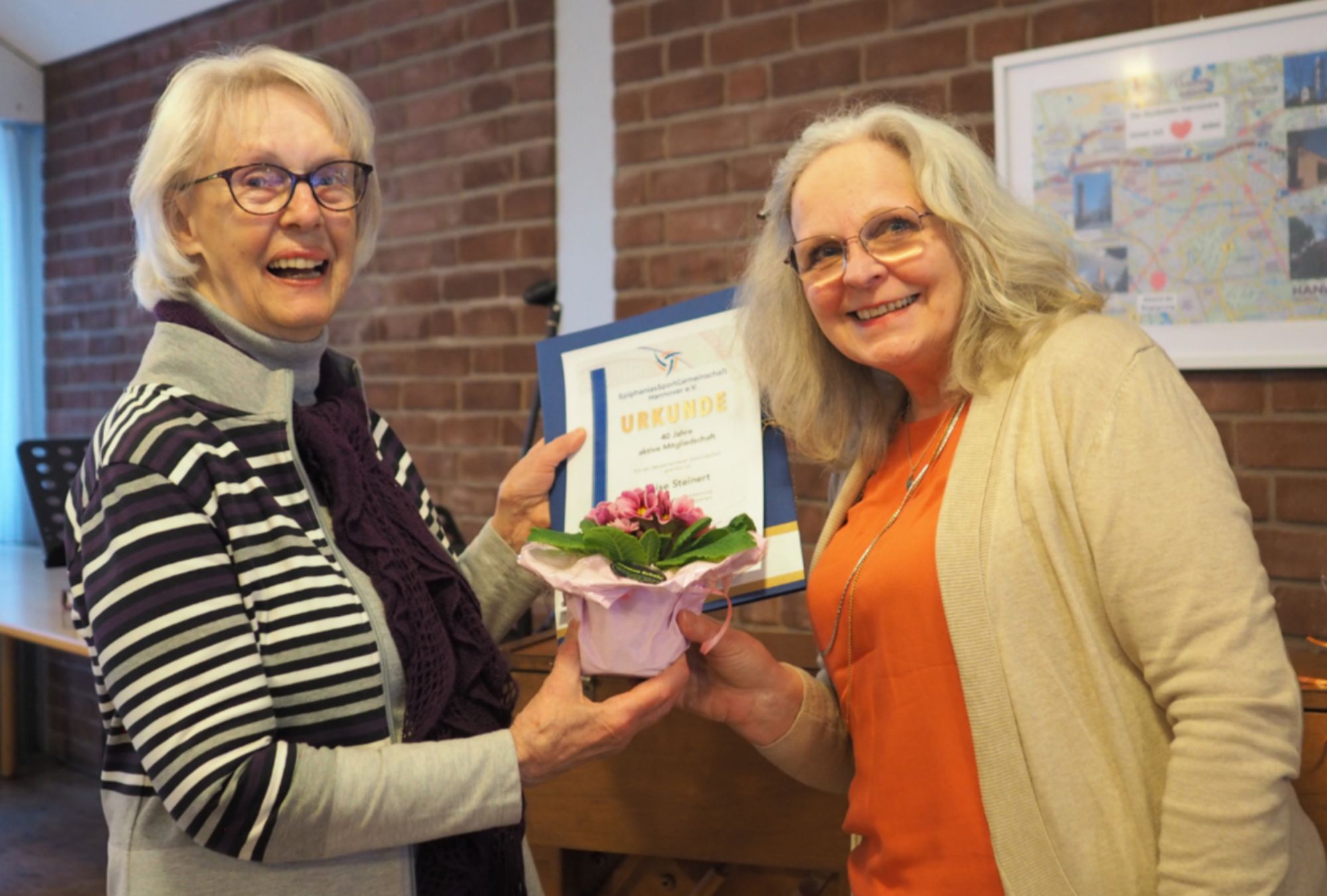Mit 49 Mitgliedern fand unsere diesjährige Mitgliederversammlung am Samstag, den 7. Februar, in vertrauter Umgebung und angenehmer Atmosphäre statt. Fast alle Übungsleitungen waren dabei, und Oskar nutzte die Gelegenheit, sich gleich allen als neue Übungsleitung vorzustellen. Neben den regulären Berichten standen vor allem die Ehrungen im Mittelpunkt: In Abwesenheit wurden Ute und Hannelore für 25 Jahre Mitgliedschaft geehrt, Luise für 40 Jahre und Kurt für stolze 50 Jahre. Gaby hielt dazu eine persönliche Laudatio für unser erstes Goldmitglied.