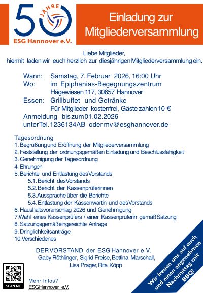 Unsere Mitgliederversammlung findet am Samstag, den 7. Februar 2026, um 16:00 Uhr in der Epi statt.